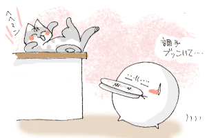さすがにバツが悪いらしく、身体を舐めてゴマかしていた。