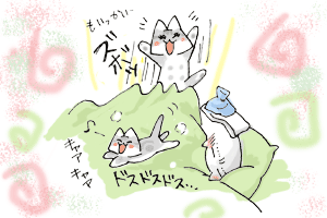 猫雑誌などにこんな時「愛猫が心配そうについていてくれた」なんて話がよくあるなぁ、などと考えながら寝ていたら…
